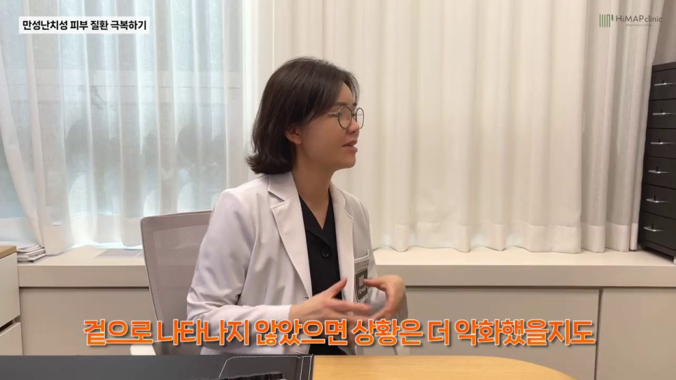 겉으로 나타나지 않았으면 상황은 더 악화되었을지도 모른다고요. 그나마 이렇게 증상이 겉으로 나타났기 때문에 심각성을 깨닫고 적극적인 치료를 하셨을 거라 감히 짐작해봅니다.